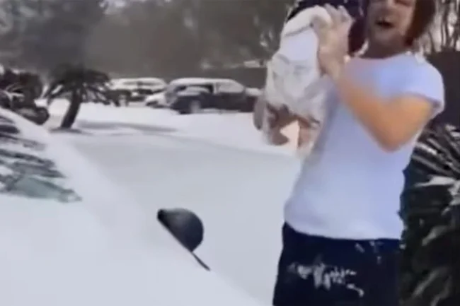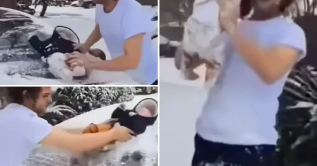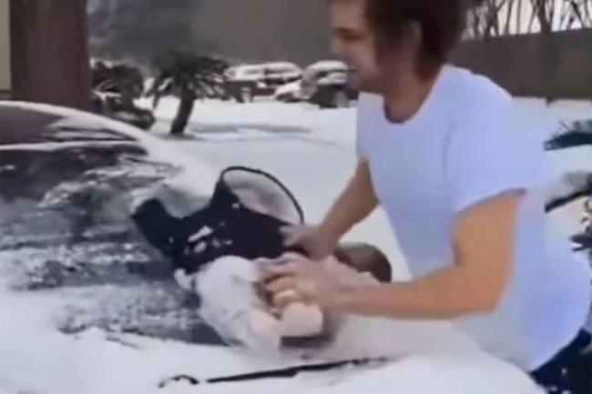 Американец очистил машину от снега 3-месячным сыном (4 фото + 1 видео)