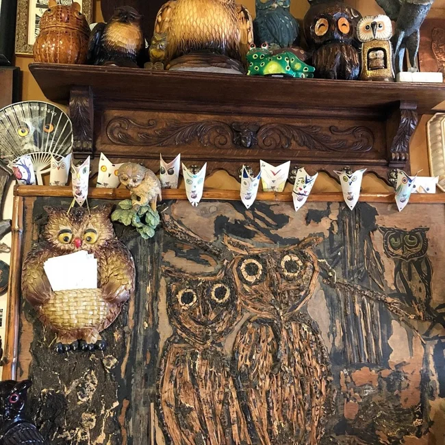 Основатель музея начал собирать коллекцию совиных предметов искусства в возрасте 15 лет. Постепенно, с помощью друзей и семьи, коллекция Бэ выросла до более чем 3 000 предметов, связанных с совами, из 70 разных стран, включая Японию, Польшу, Зимбабве и Египет. Большинство из них сделаны вручную - это картины с совами, горшки, часы, игрушки, ширмы, посуда... Назовите предмет, на котором может быть изображена сова, и у Бэ он непременно найдётся.