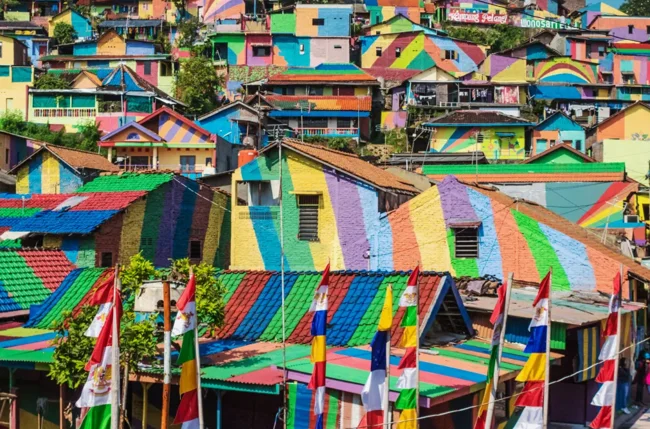 Район трущоб в Кренданге в Джакарте недавно запылал красками. Стены домов украсили рисунками из мультиков и авторскими артами. Такие красочные районы есть во многих странах, их называют «инстаграмными деревеньками», одна из самых известных расположена в Южной Корее в Пусане. Но и другие страны нередко заводят себе такие ради привлечения туристов.