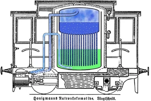 Но у содового локомотива была одна важная особенность: выработанный пар не выбрасывался наружу, а снова направлялся в каустическую соду, поддерживая реакцию. Благодаря этому система работала в замкнутом цикле, и локомотив передвигался почти бесшумно. К тому же, в отличие от традиционных паровозов, он не оставлял ни клубов дыма, ни сажи.