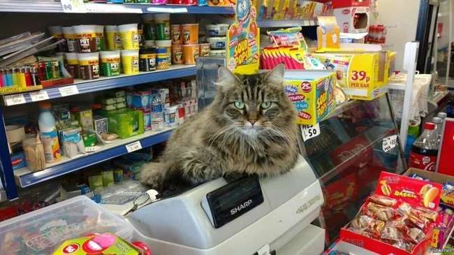 23 котика, освоивших профессию кассира и отлично справляющихся с работой (24 фото)