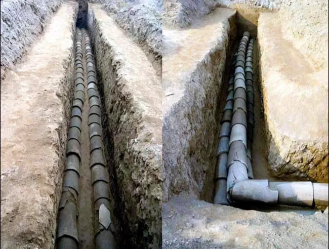 22. Керамические водопроводные трубы, найденные возле дворца Эпанг, Китай, 5-3 век до н. э.