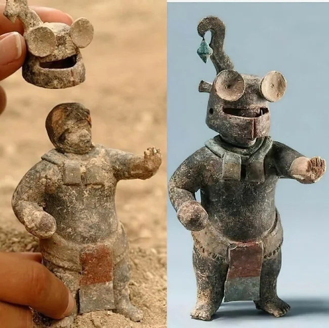 1. 1500-летняя керамическая фигурка майя со съёмным шлемом, найдена в Эль-Перу, Петен, Гватемала