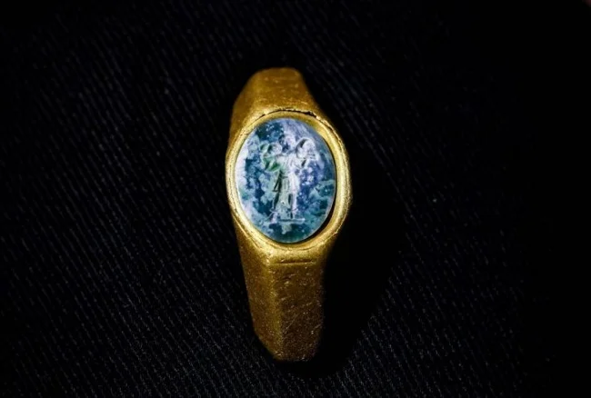 9. Кольцо времён Римской империи (около 1700 лет назад) с изображением мальчика-пастух - ранним образом Иисуса Христа
