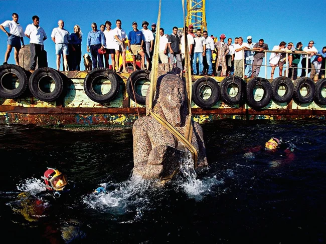 20. Статуя из глубин залива Абу-Кир в Александрии, Египет. Когда-то она украшала затонувший город Гераклион