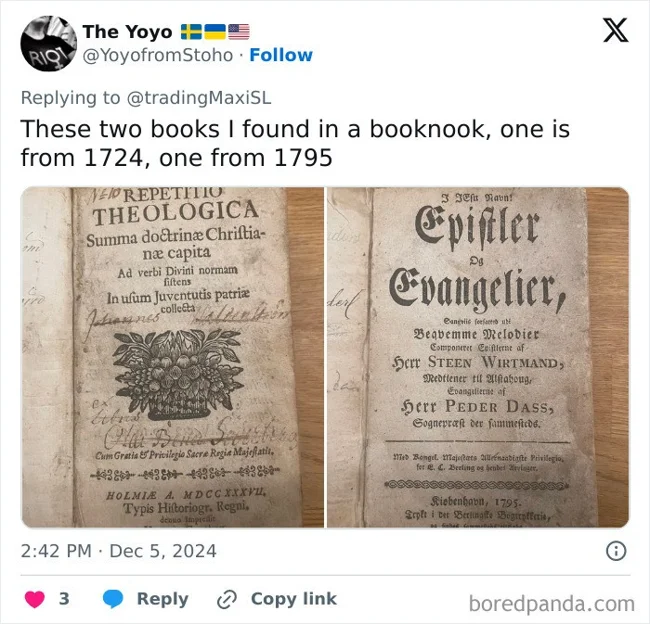 28. Эти две книги я нашёл в книжном шкафу, одна из них датирована 1724 годом, другая - 1795-м