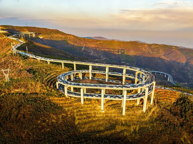 Находится трасса неподалеку от города Тайюань, а главная её особенность в трехуровневом спиральном подъеме. Вид там открывается настолько прекрасный, что желающими полюбоваться порой занята целая полоса.