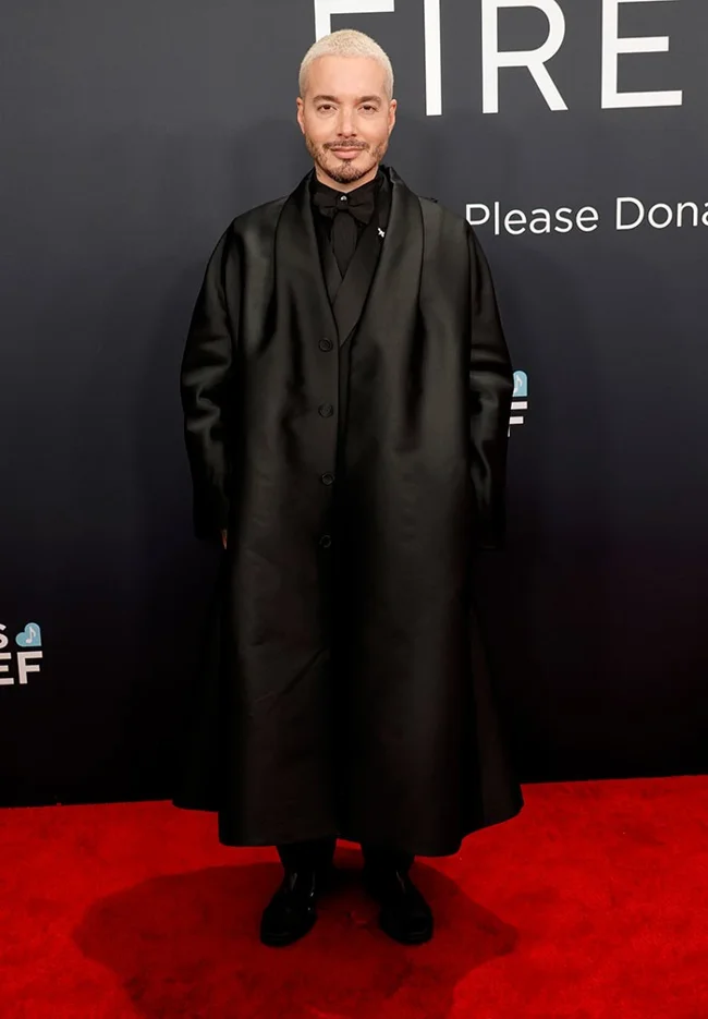 Балвин излучал уверенность и харизму в образе от Dior. Полностью чёрный комплект включал в себя костюм и пальто оверсайз.