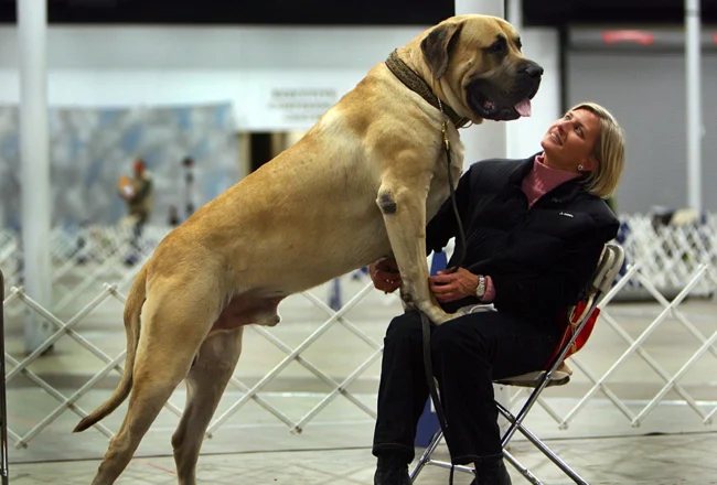 Вспомните, как выглядят собаки вышеперечисленных пород? Как правило, они ширококостные, с толстыми лапами и бочкообразной грудью, у них много рыхлой шкуры, есть складочки. Это всё — издержки селекции на размер. Проще говоря, если вы захотите увеличить овчарку раза в два, она тоже станет похожа на мастифа, у неё получатся широкие крепкие кости, чтобы поддерживать свой же вес. Но неизбежно упадут уши. Поскольку ушки тоже увеличатся пропорционально остальной собаке, станут массивнее и тяжелее, они просто не смогут подняться торчком. Примерно так и получилось с молоссами — размер и типичная внешность повлияли на хрящ уха, который сделался тяжёлым, и теперь всё время ухи висят.