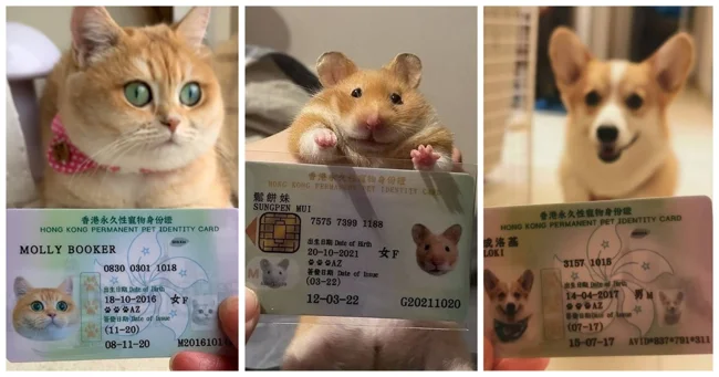 В Гонконге домашним питомцам оформляют удостоверение личности. Предлагаю вам посмотреть небольшую подборку животных с их "паспортами".