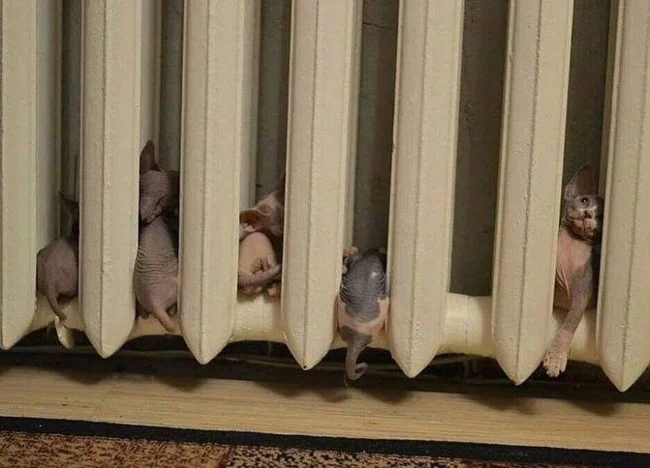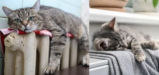 Лица у них при этом становятся довольные, но потом хозяева иногда замечают пожелтевшие участки шерсти на кошачьих боках. Это результат долгого термического воздействия горячей батареи на кошачью шубку.