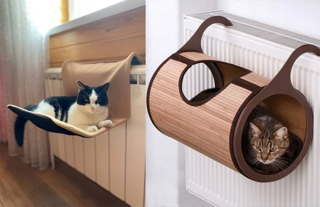 Что касается подстилки, то есть какой-нибудь тряпочки, которую некоторые хозяева кладут на батарею, то это лучше чем ничего, но не очень удобно, так как кошка порой съезжает с батареи вместе с подстилкой.