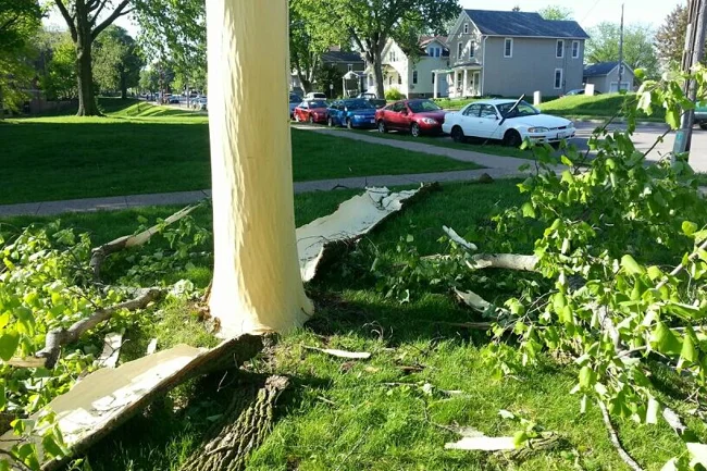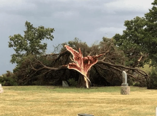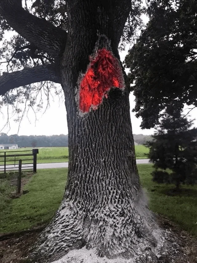 Ещё один вариант того, что может произойти с деревом, в которое ударила молния