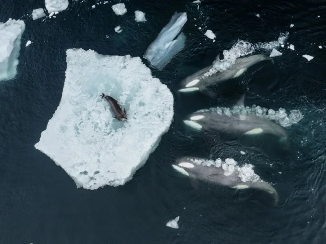 Косатки учат своих детенышей охоте у берегов Антарктиды (1 фото + 1 видео)