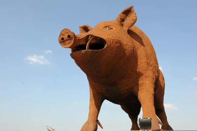 Когда монументальный шедевр был завершён, он медленно добрался до своего дома на вершине холма на грузовике. За его гордым шествием наблюдали толпы людей со всей области, а затем большую свинью навсегда установили на вращающейся платформе, где она стоит и по сей день.