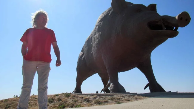 Кабан по кличке Войник высотой более 9 метров и длиной почти 15 метров - весьма необычное создание. Гигантское животное было изготовлено скульптором Эриком Слезяком, который создал зверя в 2008 году. Войник сделан из стальных листов, сваренных вместе на полом каркасе, и весит более 50 тонн. В его внутренностях есть даже люк, расположенный, как ахиллесова пята, на нижней части живота. Примечательно, что на создание этого грандиозного творения у Слезяка ушло более десяти лет.
