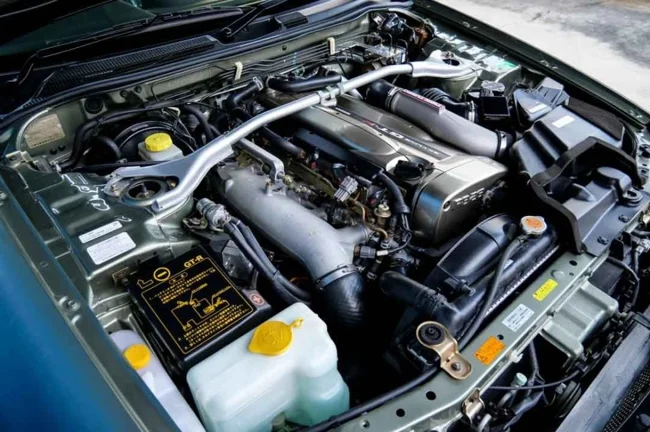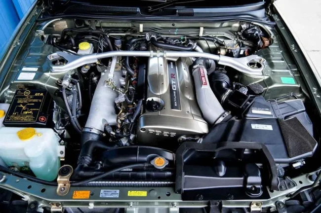 Приставка V Spec II в названии Skyline GT-R означает наличие более жёсткой подвески, увеличенных задних тормозных дисков, карбонового капота, а также несколько иной отделки салона. Однако данный экземпляр принадлежит к ещё более редкой серии Nür, созданной в честь культового немецкого трека «Нюрбургринг». Такие автомобили главным образом отличались силовой установкой, построенной вокруг гоночного блока N1 с турбокомпрессорами покрупнее. Несмотря на то что заявленная отдача 2.6-литрового RB26DETT сохранилась на уровне 280 сил, реальная превышала 334.