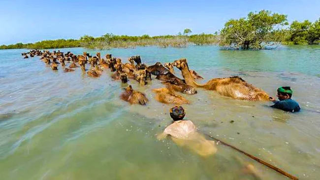 Эти животные никогда не видели пустынь. Они — корабли океанов, а не барханов. Верблюды Харай рвут все шаблоны. Это единственные в своем роде морские верблюды, способные за раз проплыть 10 километров!