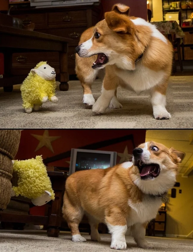 Но в реальности нередко бывает так, что грозный пёс, который без раздумий бросится на защиту своего человека, приходит в ужас от звуков пылесоса и трясётся, увидев бабочку. Что творится в душе у пёсиков в такие моменты, можно только догадываться. Зато бесценные эмоции легко запечатлеть на фотографиях, чтобы потом смеяться над паникой питомцев вместе с ними.