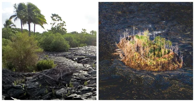 Эти участки земли, не тронутые лавой, становятся своеобразными оазисами для растений, животных и птиц, которые находят приют в негостеприимной среде. Они называются кипука - слово, пришедшее из гавайского языка и означающее «дыра» или «отверстие».