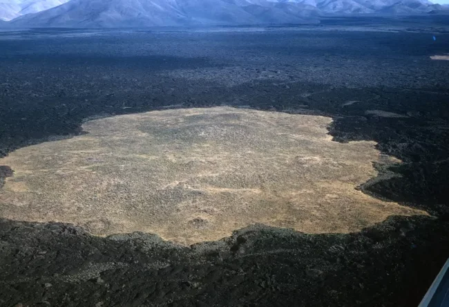 Кипука возвышается над лавой в Национальном заповеднике «Кратеры Луны», штат Айдахо