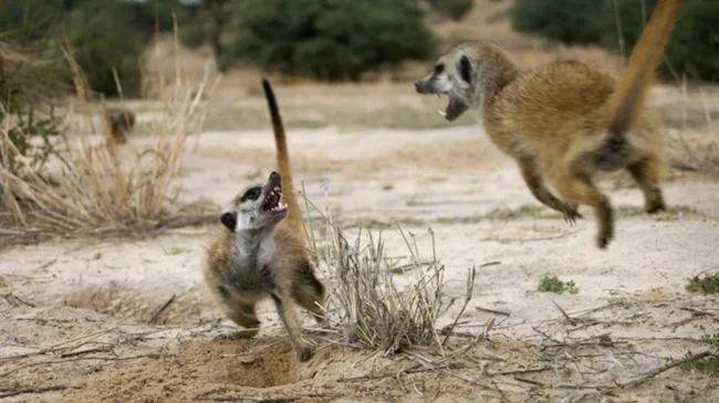 Сурикаты — мелкие и относительно слабые хищники, поэтому природа их не жалеет. И они друг друга не жалеют тоже. В обществе сурикатов до 20% животных погибают от клыков других сурикатов во время схваток между стаями и внутренней борьбы за власть. Для справки: у людей только 2% населения погибает от рук других людей.