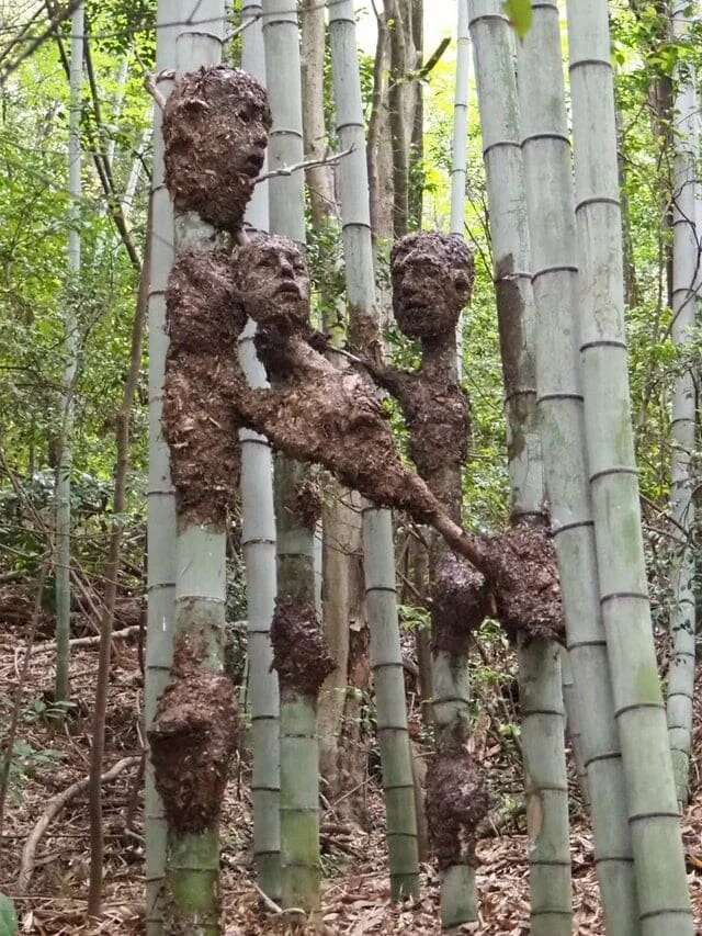 Пытаясь выяснить, что это за дичь, комментаторы предположили, что, возможно, кто-то повесил головы кукол или манекенов, а осы свили там гнёзда.