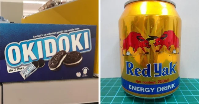 Представляю примеры пиратской продукции с фейковыми брендами, создатели которых всё-таки заморочились и интересно обыграли знаменитые названия и визуальный стиль оригиналов. В итоге мир получил что-то странное, смутно знакомое и уморительное!