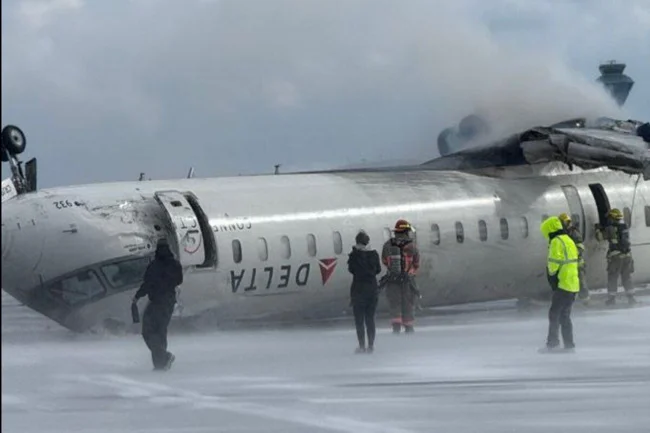 Самолет, выполнявший рейс из Миннеаполиса (США), при посадке перевернулся на крышу в международном аэропорту Торонто (Канада). Инцидент случился в минувший понедельник около 14:45 (22:45 мск). Телеканал ABC News отмечает, что крушение могло произойти из-за серьёзного ветра, скорость порывов которого достигала 65 км/ч, а на высоте была еще больше. Момент ЧП попал на видео.