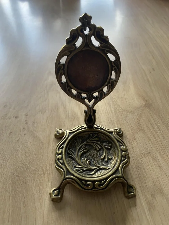 Это старинная подставка из латуни для карманных часов.