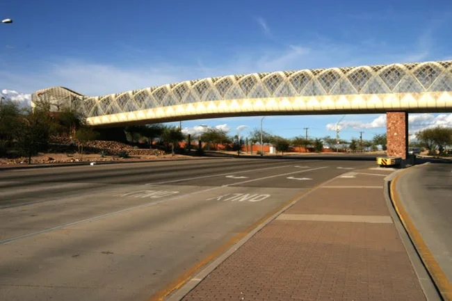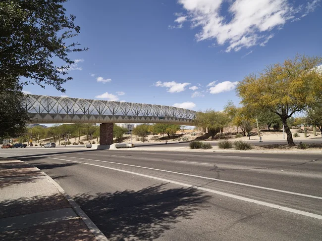 В Тусоне огромная металлическая змея помогает пешеходам пересекать оживлённое шоссе.