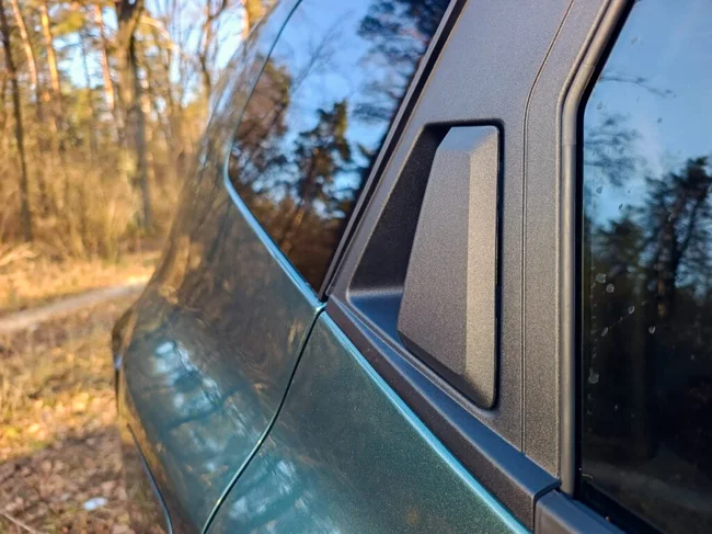Лично мне первое, что бросилось в глаза – высокие карты дверей и довольно узкие стекла. Они создают ощущение, будто садишься в Land Rover Defender или что-то в этом роде. К тому же это создает некое ощущение «защищенности», а рельефный капот лишь подкрепляет ощущение «внедорожности». Влияет ли это негативно на обзор? По-моему, никоим образом. Зеркала достаточно большие, предусмотрены камеры, паркторщики и т.д.