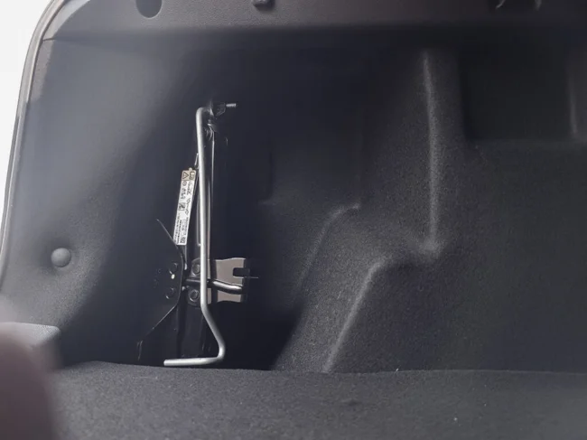 А вот что вызвало удивление – ничем неприкрытый домкрат. Да-да, все выглядит точь-в-точь как на фото (хотя раньше он прятался под фальшь панелью). Почему так – вопрос риторический.