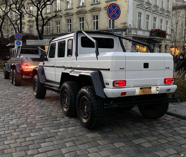 Впрочем, вполне возможно, что увиденные во Львове авто могут быть не оригинальными Mercedes G-Class 6X6 — об этом свидетельствует дизайн радиаторной решетки одного из пикапов. Копии шестиколесного Гелендвагена производят разнообразные тюнинг-ателье и мастерские. В частности, в Украине несколько таких пикапов построили житомирские и луцкие мастера.