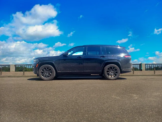 Grand Cherokee L отличается сдержанным, но уверенным дизайном. Большая радиаторная решетка, фирменные узкие LED-фары и четкие линии кузова создают образ современного и престижного авто. По сравнению с Land Cruiser 300, Jeep выглядит свежее и даже более изящно. Интерьер автомобиля также впечатляет: качественные материалы, продуманная эргономика и отсутствие ощущения дешевизны, иногда проскальзывает в конкурентах. Здесь даже 21-дюймовые колеса не мешают обеспечивать комфортную поездку.