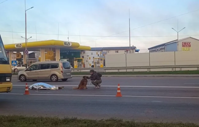 Украинский Хатико ни на шаг не отходил от погибшего хозяина после ДТП (видео)
