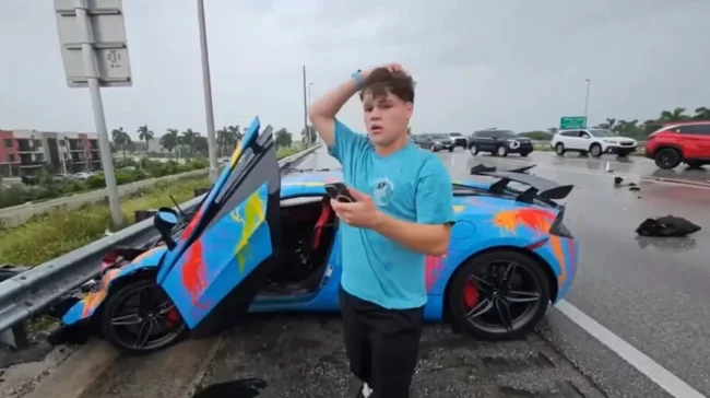 ДТП произошло в Майами в дождливую погоду. Джек Догерти с другом вели стрим из McLaren и блоггер отвлекся на телефон. Этого хватило, чтобы автомобиль потерял управление на мокрой дороге и врезался в отбойник.