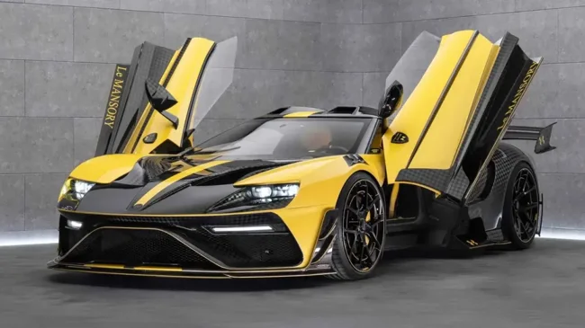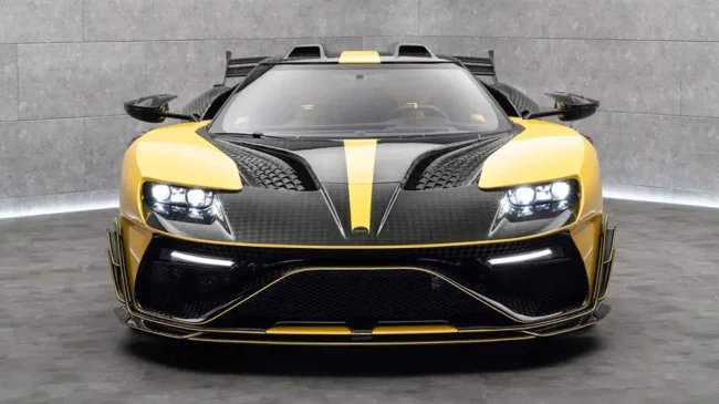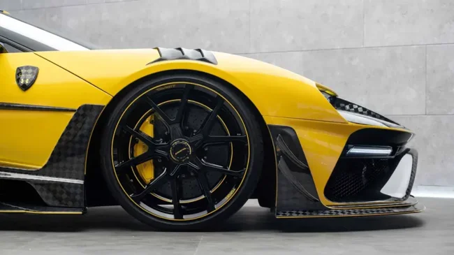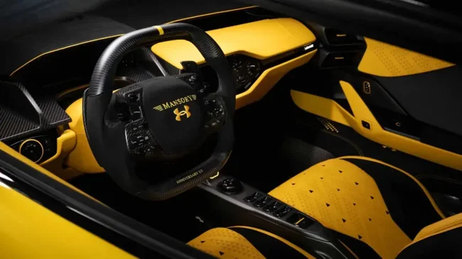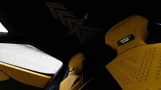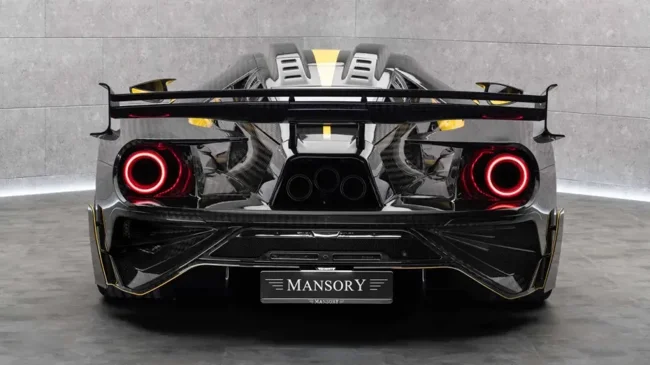 Дизайн суперкара во множестве дополнен различными новыми аэродинамическими компонентами из углепластика, включая массивное антикрыло. Кроме того, Mansory сообщает о кастомной светотехнике из четырёх отдельных блоков и 21-дюймовых колёсных дисках. И кузов, и колёса оформлены в сочетании чёрного и жёлтого оттенков. Аналогичная гамма применена в полностью перешитом салоне, отделанном кожей, алькантарой и карбоном.