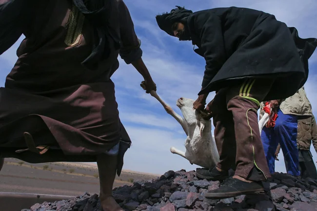 «Каждый раз мы теряем по меньшей мере пять или шесть коз, — говорит Осман, мощного телосложения пастух родом из Сенегала. — Иногда их подбирают кочевники, иногда они умирают, а бывает, нам везёт, и мы ловим их на обратном пути».