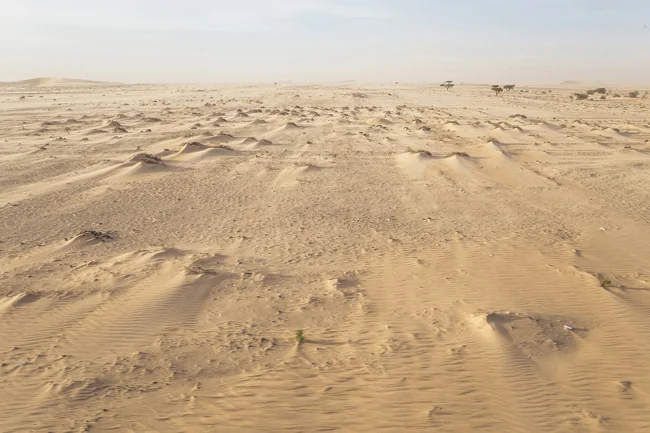 Где-то на горизонте виднеется Западная Сахара - спорная территория, находящаяся под управлением Марокко. Граница между Западной Сахарой и Мавританией заминирована