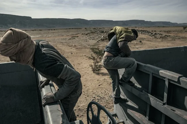 22. Мавританские торговцы прибывают на станцию Зуэрат, где их уже ждут коллеги на пикапе