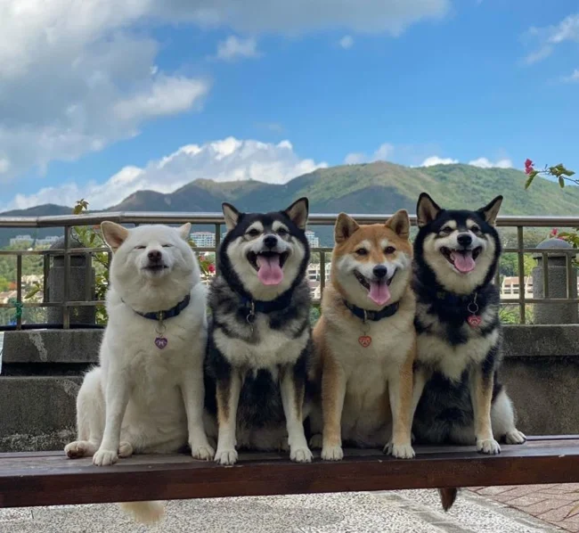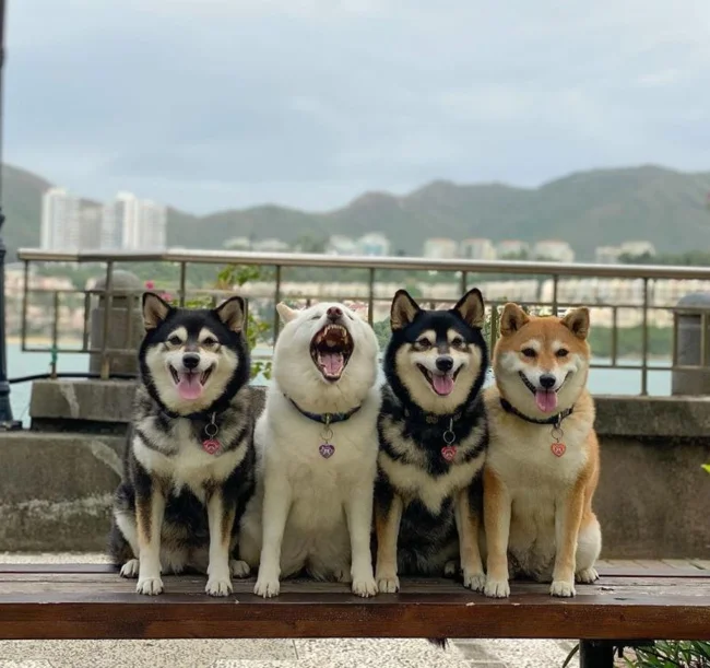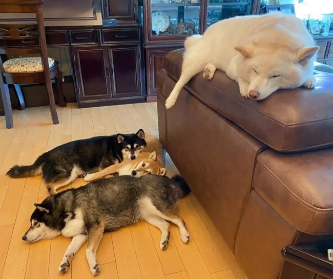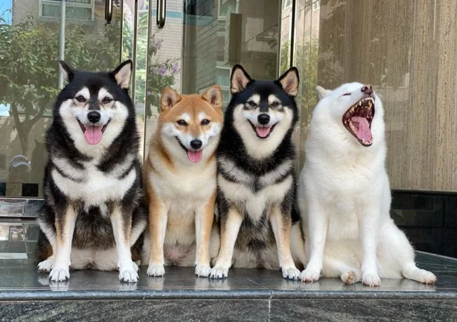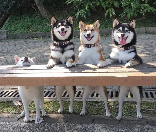 У японки Йоко дружно живут четыре собаки - Саша, Кикко, Момо и Хана. Но вот на групповых фото Хана постоянно отрывается от коллектива. Впрочем, благодаря этому фотографии становятся ещё симпатичнее!