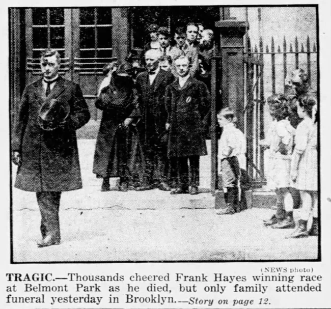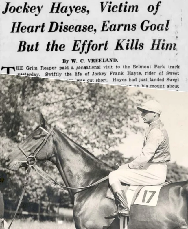 Врач ипподрома доктор Джон А.Х. Вурхиз поспешил на место происшествия, полагая, что Хейс получил травму. Он оказал первую помощь, но было уже слишком поздно. Фрэнк Хейс был мёртв.