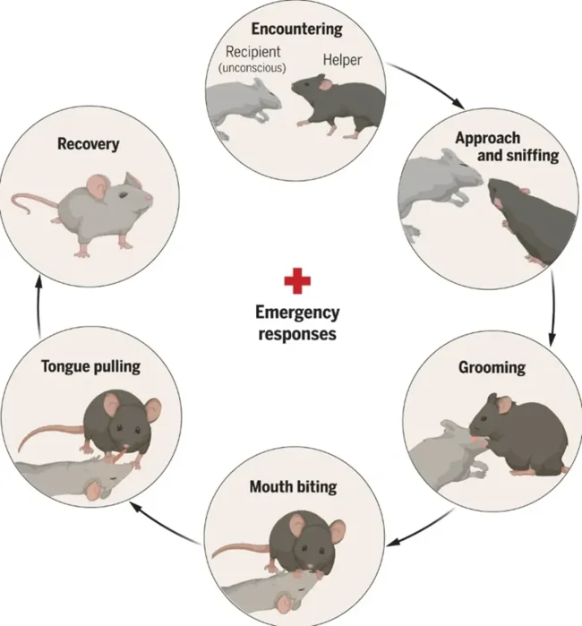 В статье говорится об исследованиях над лабораторными мышами, которые провели семеро учёных китайского происхождения из Университета Южной Калифорнии в Лос-Анджелесе. Они заметили особые проявления заботы между грызунами, которые провели определённое время вместе и которых можно считать условными "товарищами". Для этого одному животному вводили анестезию и наблюдали, как будет вести себя другое. Ученые увидели целый комплекс реанимационных мероприятий, который должен был вернуть к жизни потерявшее сознание существо. При этом действительно удавалось вернуть к жизни "товарища" и даже удалялись посторонние предметы из дыхательных путей, заметили ученые.