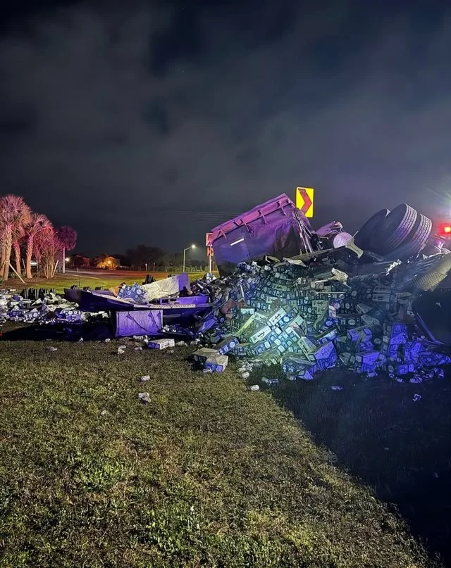 Во Флориде перевернулась фура, перевозившая 20 тысяч литров пива (4 фото)