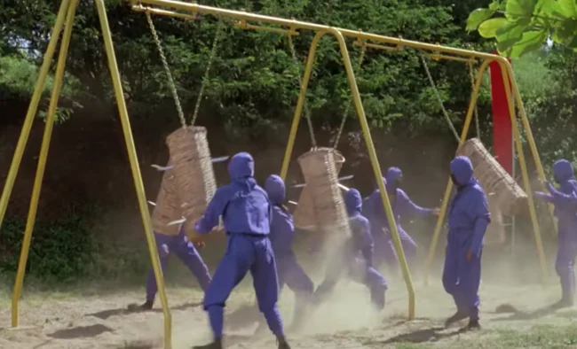 10. Самая забавное - это тренировочная база ниндзя. Дело в том, что роль этого тренировочного лагеря сыграла самая обычная детская площадка с батутами и качелями, которую немного переработали для фильма.