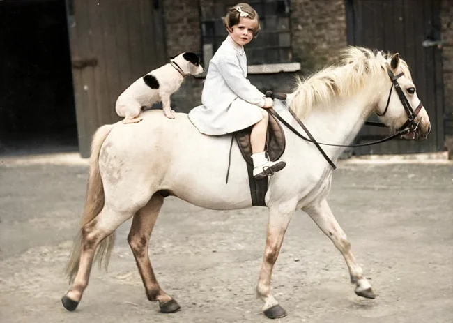 Путешествие первым классом. Лондон, 1938 год.Обезьянка Бидлс и собака Питер в Хэмптон-парке.