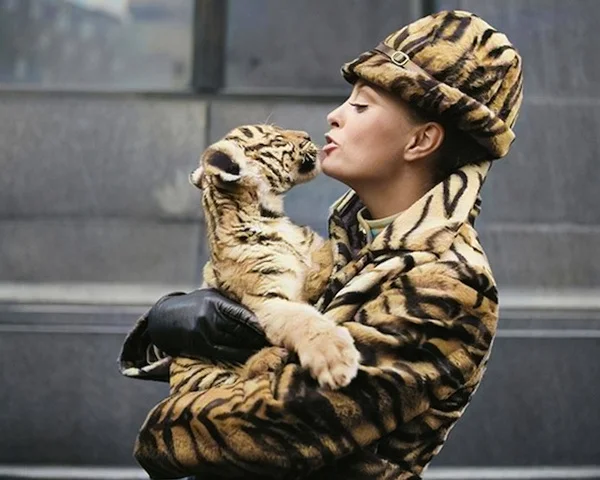 Стюардесса Синтия Робертсон с тигренком, 1971 год.