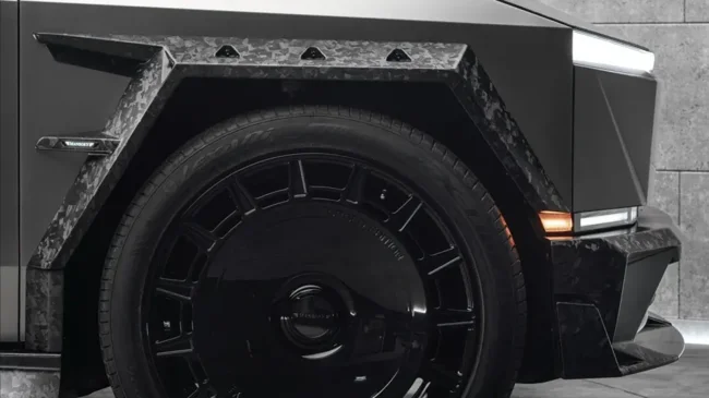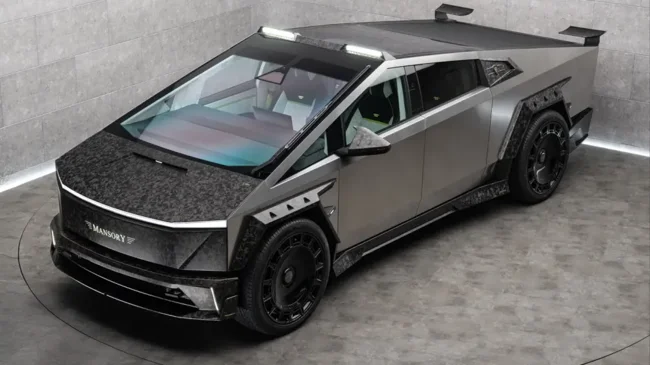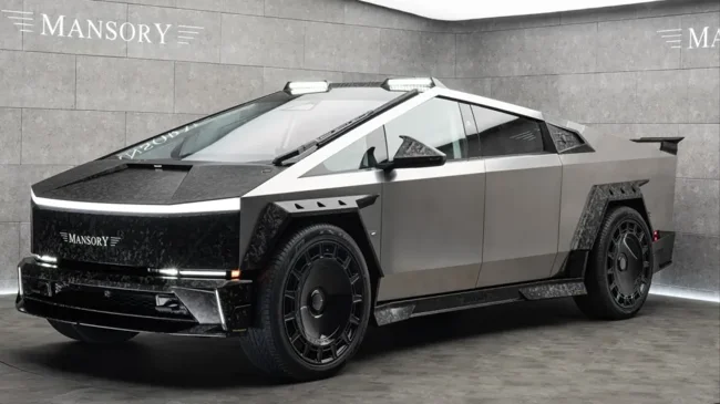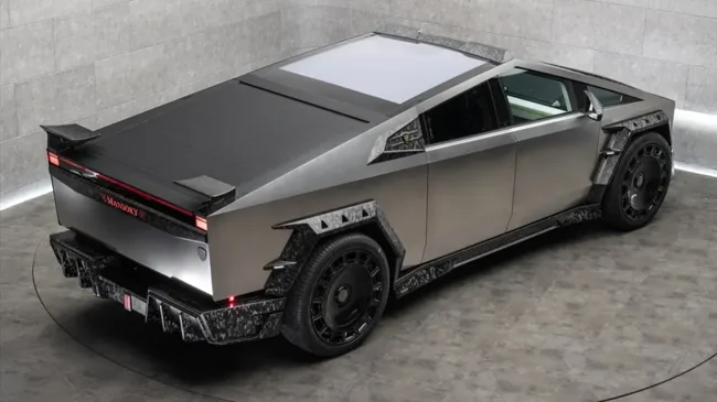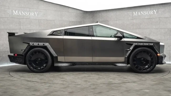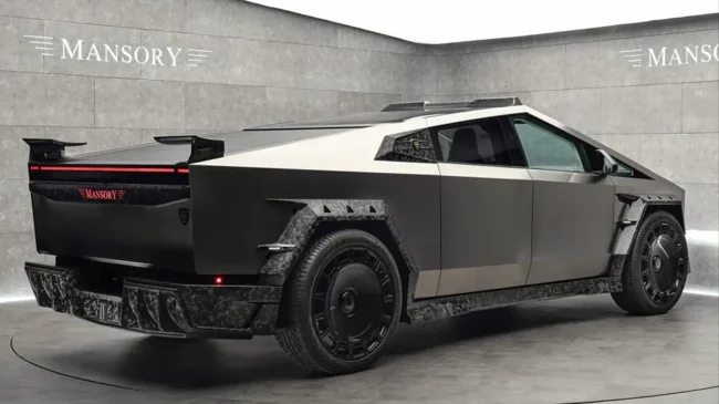 Ателье официально упоминает новый бодикит для Cybertruck, полностью выполненный из углепластика. На фото можно увидеть бамперы агрессивного дизайна, нарочито угловатые расширители колёсных арок, альтернативную крышку переднего багажника, другие боковые зеркала и, наконец, составной спойлер для кормы в сочетании с массивным диффузором. Также Mansory пообещала 26-дюймовые колёсные диски.