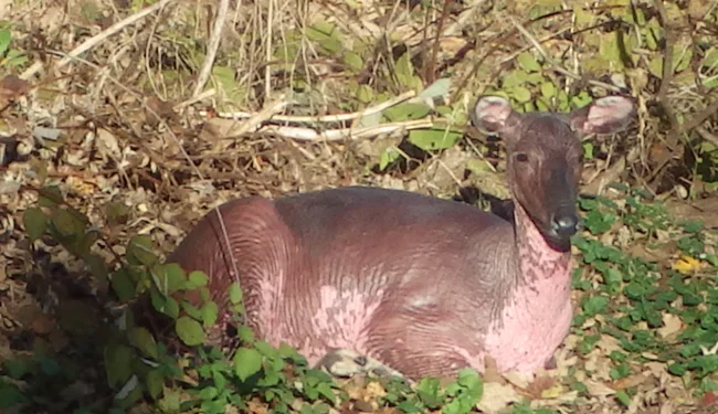 12 лет назад в Америке обнаружили полностью лысого оленя. Зиму он, конечно, не пережил.